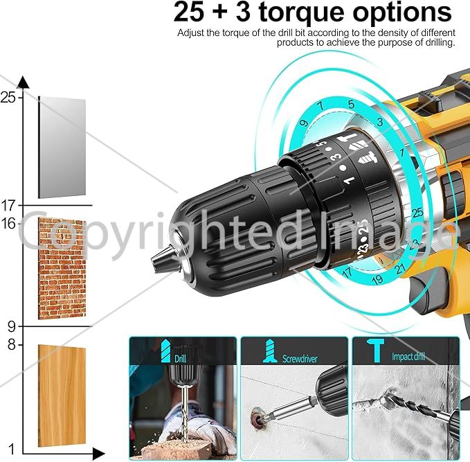 With a max torque of 35 Nm and a 2-speed transmission (0-400/0-1500 RPM), the JayLene 21V Cordless Drill Set is capable of handling a variety of materials. The 18+1 position clutch offers precise control, ensuring accurate and controlled drilling and driving every time. The magnetic bit holder and included bit sets expand the tool's versatility, making it suitable for various applications.